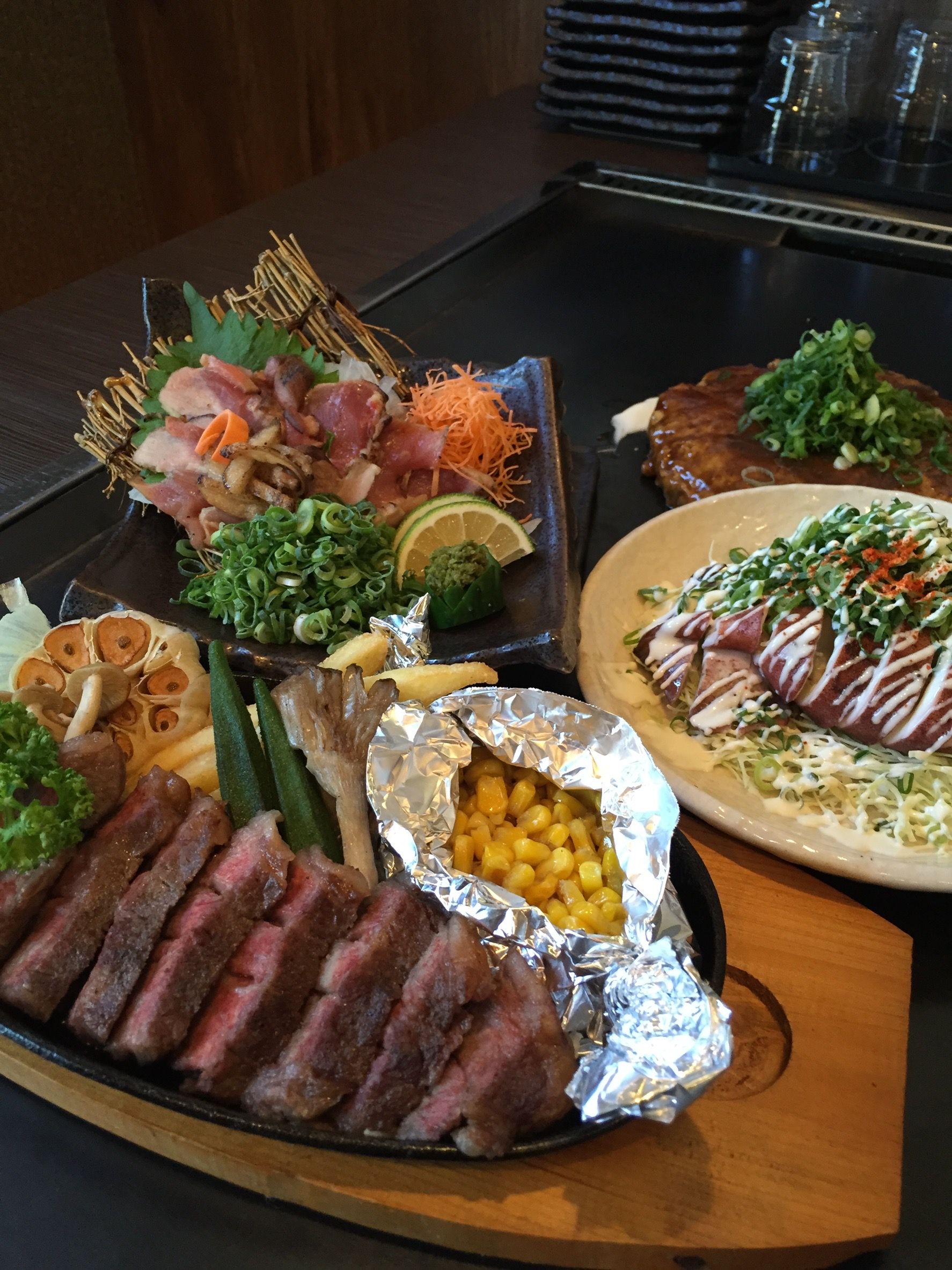 気軽に楽しめる居酒屋メニューから、本格的な鉄板焼き料理まで充実のラインナップ。